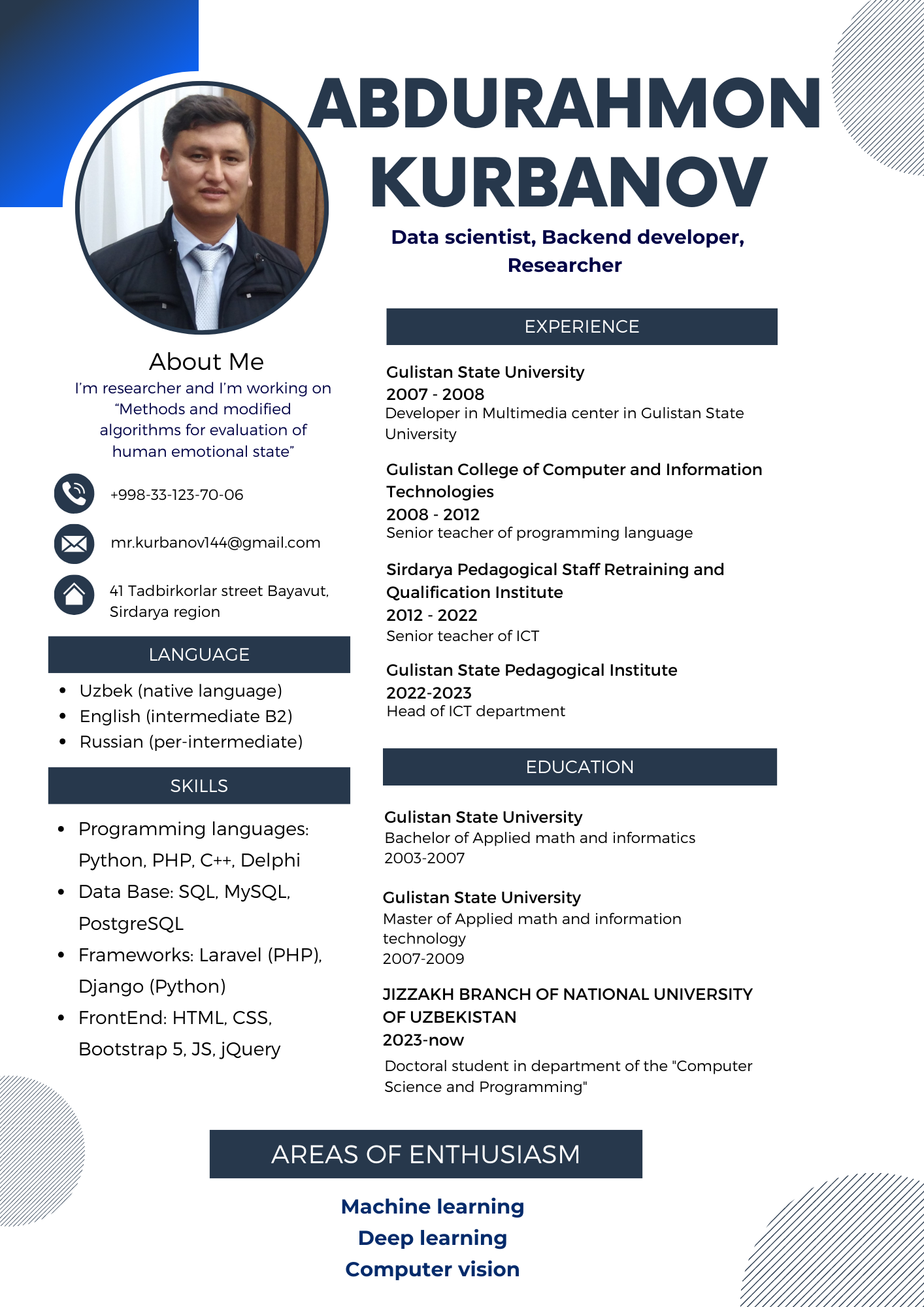 2000-2004 yy. - Guliston davlat universiteti talabasi;
